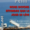 ... Vu de loin, on dirait qu’ils s’écrivent, en fait, ils crient : SURTOUT, NE DÉCRIS PAS LA MER, CE N’EST PAS LA PEINE, JE VAIS PASSER DEVANT, MOI AUSSI. J’AI PLUS ENVIE DE RACONTER UNE HISTOIRE D’AMOUR, MAIS JE N’EN AI PAS LA MOINDRE IDÉE. LE PREMIER ARRIVÉ VA AU-DEVANT DE L’AUTRE OU BIEN RETOURNE SUR SES PAS OU BIEN REPENSE AU CHEMIN PARCOURU. SI J’ARRIVE LE PREMIER, TU M’ATTENDS ? ON POURRA REMETTRE LA MUSIQUE AUTANT DE FOIS QU’IL NOUS PLAIRA. LE PREMIER TROUVÉ OUVRE LES YEUX. QU’EST-CE QUE TU FERAIS SI TU AVAIS QUINZE SECONDES ? TRENTE ? CINQUANTE-TROIS MINUTES ? (SACHANT QU’UN BATEAU MET PRESQUE UNE SEMAINE POUR TRAVERSER L’OCÉAN).